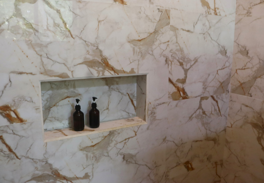 The stylish en-suite bathroom is equipped with a walk in shower, solar hot water & toiletries.