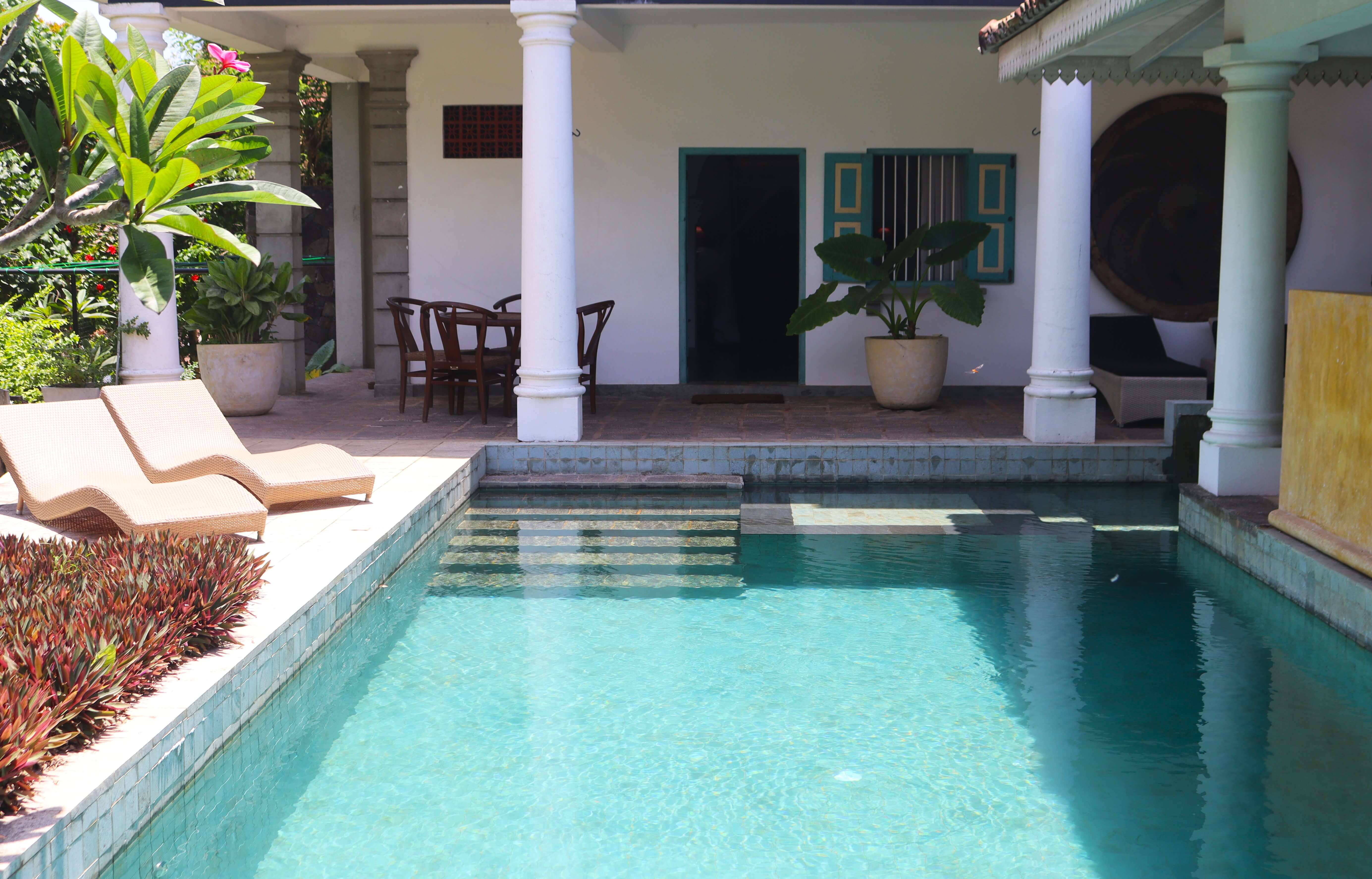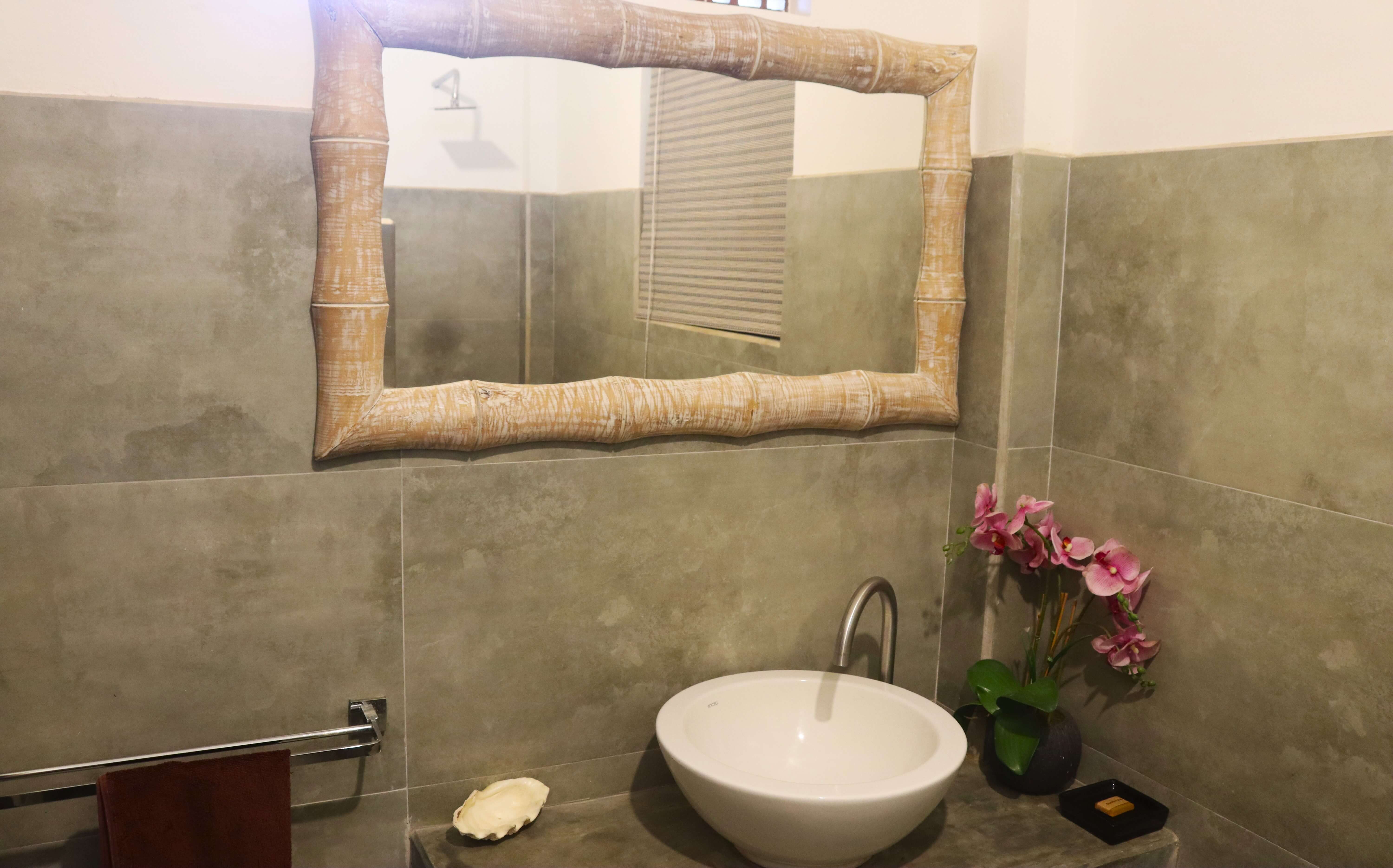 Jasmine is the ground floor room in the villa and looks directly out onto the pool. The room has a queen sized bed, a seating area, an en-suite bathroom with solar hot water and also an additional outside open air shower. It also comes equipped with AC, fridge & tea/coffee making facilities.